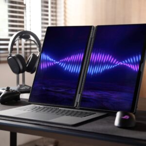 The Zephyrus Duo is the “world’s first 16-inch dual-screen gaming laptop,” according to ASUS. It boasts a pair of 3K HDR OLED touchscreens that offer a combined 21 inches of diagonal screen space. They’re DisplayHDR True Black 1000 certified, and can each hit 1,100 nits of peak HDR brightness. Both offer a 120Hz refresh rate and 0.2ms response time, though only the main screen supports NVIDIA G-Sync.