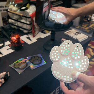 But Rescue Retriever wasn’t at Pepcom just to show off a device they launched two years ago. New to this year is the Fire Tag, which brings the strobe light from the main unit to a small tag you can place on your dog’s collar. The tag syncs up to the main unit using RFID: When the main unit detect smoke and starts strobing, the Fire Tag will pick up the signal, and will follow suit.
