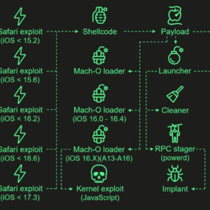 The exploit kit contains five full iOS exploit chains and a total of 23 exploits, including CVE-2023-32434 and CVE-2023-38606, both of which were first used as zero-days in Operation Triangulation, a sophisticated campaign targeting iOS devices that involved the exploitation of four vulnerabilities in Apple’s mobile operating system.