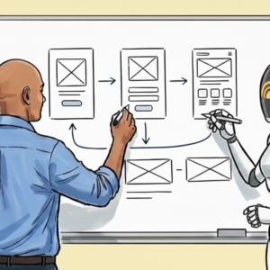 Sketching on a whiteboard with an AI collaborator — image generated by AI