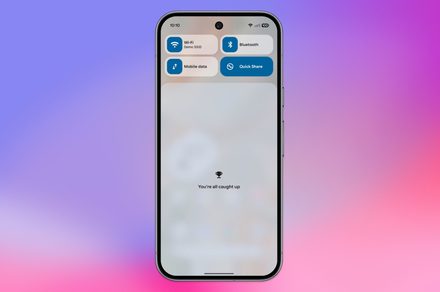 The first one is a notification shade update. Once you’ve cleared all your notifications, your phone shows you a “You’re all caught up” message instead of “No notifications.” It’s a small, humanizing touch, which feels nicer to read.