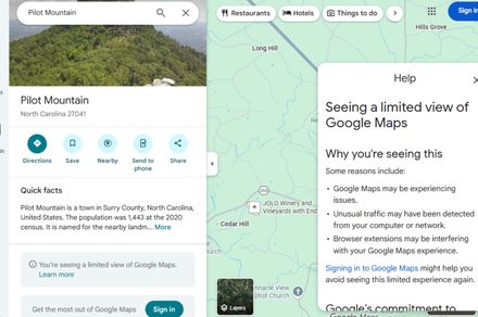 Signed-out users are reportedly seeing a pop-up that informs them about “Seeing a limited view of Google Maps,” along with the list of possible reasons, including Maps experiencing issues, unusual traffic from users’ computers or networks, or browser extensions.