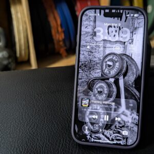 Here’s one example, above. I have a widget that lets me start my most common Apple Watch workouts, one for my recent YouTube Music playlists, and one for commonly used interval timers. I also have icons for some of my commonly used fitness apps, and a calculator for when I need to find percentages for certain workouts. I chose a photo of weights for my wallpaper to remind myself that I’m in fitness mode.