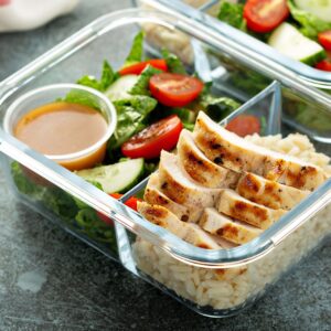 When you get serious about your fitness goals, one first step is usually to get your nutrition in order. You want to get enough protein to support your muscles, fruits and vegetables for health, carbs for fuel, and a total amount of calories that supports your activity and your goals without undereating or overeating. Preparing your meals ahead of time (“meal prepping”) really helps with that.