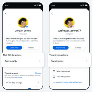 “Parents will be able to see the topics their teen has been asking Meta AI about in [Facebook, Messenger or Instagram] over the past week,” Meta explained in a blog post. “Topics can range from School, Entertainment, and Lifestyle to Travel, Writing, and Health and Wellbeing, among others.”
