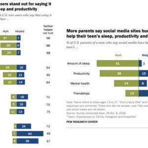 Relatively few teens reported negative mental health effects, with 9 percent of Snapchat and TikTok users and 11 percent of Instagram users saying they thought the services had hurt their mental health. More teens reported negative effects on sleep and productivity, however, especially when it comes to use of TikTok. Thirty-seven percent of teens said their use of the app had hurt their sleep and 29 percent reported that it had affected their productivity. Even so, the majority of teens responded that the apps had “neither helped nor hurt” their mental health, sleep or productivity.