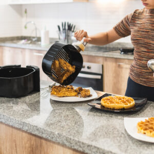 We’re keeping clean up simple here. Yes, you could use power cleaners from the grocery store, they could damage the surface of your air fryer. Likewise, metal scourers or brushes could strip away the non-stick coating. Remember to unplug the device and let it cool completely.
