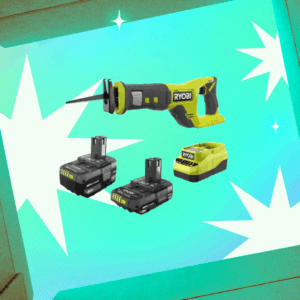 The Ryobi 18-volt cordless reciprocating saw set is on sale for $99, 65% off its regular price. A reciprocating saw can be used for making rough cuts and trimming trees and shrubs. This set comes with a reciprocating saw, a two-amp-hour battery, a 4-amp-hour battery, and a charger. This is a good tool for someone who already uses Ryobi 18-volt tools, or for someone who likes doing outdoor projects like trimming hedges.