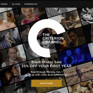 Also through Dec. 1, The Criterion Channel is also $75, but you’ll need to use the code BLACKFRIDAY25 at checkout. Your subscription will start after a 7-day free trial, and will auto-renew next year at the usual $100 rate. One caveat: This deal is for your “first year,” so if you’re a current or former subscriber, you’re out of luck unless you want to create a new account with a different email and credit card, and sacrifice your watch history.