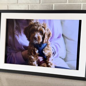 The Aura frame also just looks nice. You won’t be tricked into thinking this is a real picture frame, mind you. However, it doesn’t just look like a mini computer screen on your desk. It looks and feels classy, and the image quality is excellent. I also appreciate how the backlight compensates for the lighting in your room: When the sun’s bright, your frame gets brighter. As the sun sets, your frame dims as well. And when all the lights are out in your room, the frame automatically turns off.