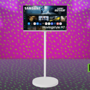 The main appeal of this monitor is its mobility. It has a stable, rolling stand that lets you move it around with ease, making it ideal for work-from-home setups, hybrid TV use, or spaces where a traditional setup isn’t practical. It’s essentially an all-in-one smart display, complete with wifi, Bluetooth, a remote control, built-in apps, and Samsung’s Tizen OS, so you can stream content without needing a laptop or console. That said, it doesn’t have a touchscreen, so it won’t function like a large tablet.