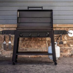 The Irontop griddles sit atop carts with four casters. Each model also has two side shelves and a larger shelf underneath for storage. The side shelves can accommodate some of Traeger’s Pop-And-Lock accessories, like the storage bin and roll rack. Those shelves also have three hooks on each side, where you can hang spatulas and other griddle tools.